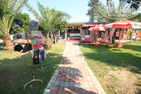 Питание: всё очень вкусное!! Всегда была курица, рыбка, были котлетки (полуфабрикаты), всегда овощи как отдельно, так и в виде салатов, а также несколько видов заправок для салатов. Мне, как любительнице кабачков и зелени всякой, было оочень комфортно! Салаты были также такие, как колбаса/сосиски с майонезом)) макароны всегда были, картофель-фри (мне показался жирноват, но как я наблюдала, эту картошку ели просто все вокруг, и особенно ее уплетали в огромных количествах дети). Супчики-пюре были, мне понравились, вкусненькие) Соки юпи порошковые, ооочень приторные! Я не могла их пить! А молодой человек пил и ему норм было)) кофе-машина всегда исправно работала, пару раз, правда, в ней заканчивалось молоко и лилась простая вода, но через некоторое время всё исправляли. Каппучино, шоколадный экспрессо вкусные, их обычно и пила. На обед всегда был десерт Гоголь-моголь, молочный и шоколадный, вкусный. Я читала в отзывах, что этих десертов не хватало, но пока я отдыхала, хватало всем вроде)) На ужин были вкусные пирожные типа хвороста, суфлешки, еще какие-то сладости. один раз было пирожное из морковки, политое арахисовым маслом с орешками. очень необычное, но понравится не всем) Также были арбуз и дыни, виноград, сливы. Я не пробовала, молодой человек сказал, что невкусно. Пока мы отдыхали, был какой-то турецкий праздник, и в этот вечер на улице повара готовили шашлык из курицы, что-то еще, вкусности всякие, в общем. шашлык ооочень вкусный!!! У бассейна дедулька лепешки вкусные печет, советую попробовать! Также в течение дня какая-то выпечка есть, в общем, голодать не будете))