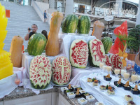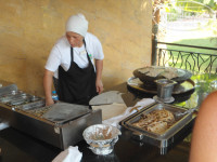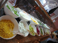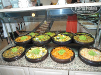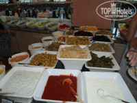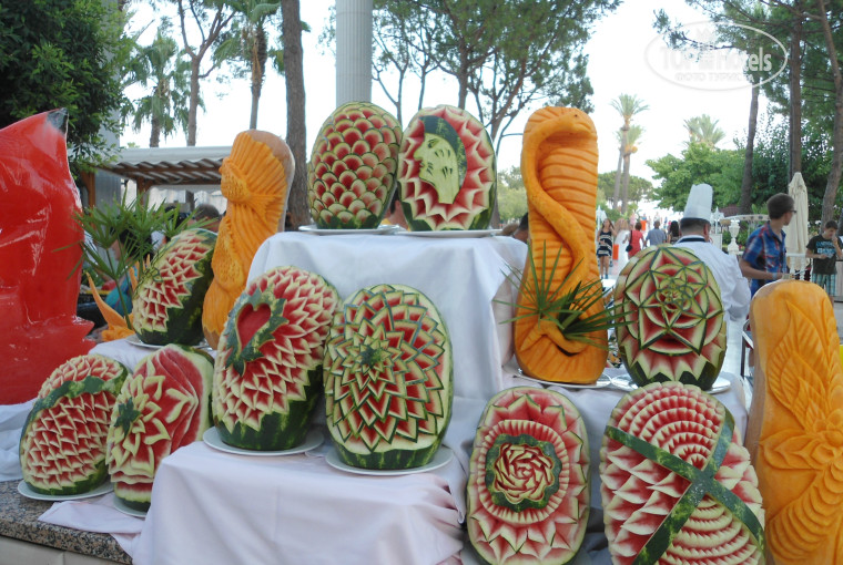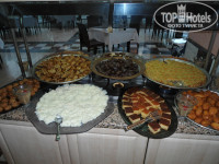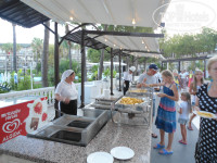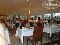 Главный ресторан работает с 7 - 10завтрак, с 10 - 11 поздний завтрак, 12:30 – 14:30 обед, 19-21:30 ужин. На улице готовят на открытом огне, гриль, фритюр и т.п. внутри готовые блюда. Некоторые писали, что маловато мяса, но я не знаю, что тогда значит много, на улице гриль всегда курица, говядина, баранина, внутри тушеное, запеченное мясо, отсутствует только свинина. Еды очень много салатов закусок… и т.д. супы только пюре, есть даже диетический стол, много сладостей и фруктов, можно попросить официантов и они принесут вам напитки (чтоб самим не бегать, это не к чему не обязывает, хотя мы давали чаевые, уж очень нам мальчик понравился, расторопный), на столах стоят бутылки воды и вина (вино никакое, дешевый крепленый портвейн).