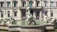 - Вилла Боргезе - вход туда бесплатный, на самом деле это самый большой парк Рима, со своим искусственным озером, на котором можно покататься на лодочке (6 евро - 15 минут), в озере есть вольер с черепашками, в центре озера -островок к подобием греческого храма Эскулапа. Перовое, на что мы наткнулись войдя в парк, были памятники Пушкину и Гоголю. Еще стоит посмотреть Пьяцца де Сиена, с памятником букве "О", где в садах есть еще водяные часы , но мы их не нашли.