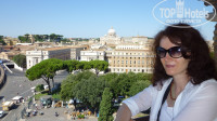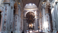 И так от выбранного нами отеля до площади Святого Петра идти 15 минут неспешным шагом, почти всю дорого вдоль стен Ватикана. С этого -объекта мы и начали наши экскурсии по Риму, если прийти в Собор утром, когда там еще нет туристов (открывает в 7-00 часов) возможно Вам удастся проникнуться духом этого величественного сооружения, к сожалению в это время идут службы и многие залы закрыты для туристов. В очередной раз восхищаясь мы прошли по нефу, остановились у балдахина, после чего спустились вниз, где по преданию захоронен сам Петр, находятся усыпальницы многих пап Римских и как я понимаю святых. Потом решили подняться на купол Собора, в наши прошлые посещения нам хватало ума этого не делать, но ведь когда-нибудь это надо сделать, хотя бы для того чтобы понять, что этого не стоило делать. И вот выходим из Собора и сразу налево, там касса и вход на лестницу, стоимость подъема на лифте 7 евро, по лестнице 5, мы решили весь путь пройти пешком (одна из монахинь нам сказала, что пеший подъем искупит наши небольшие прегрешения), ну что такого чуть более 500 ступений, ерунда, но нет.... кстати, до того места куда Вас доставит лифт дойти легко, а вот по спиральным-винтовым лестницам с неудобным шагом ступений идти реально тяжело, у меня сильно начала кружиться голова, в конце подъема я поняла, что нет у меня таких прегрешений. Ну вот мы и куполе, вид открывается красивый, но там столько народа, единственное что можно увидеть только с этого места и больше не с каких холмов, это внутренние дворики Ватикана и саму площадь. На куполе есть сувенирный магазин, там люди покупают открытки и отправляют их через почту Ватикана себе и друзьям. Многие сувениры тут стоят дороже, чем внизу.