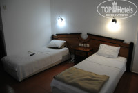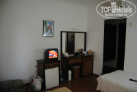 В номере очень просто, по крайней мере где мы жили: две кровати, стол, тумбочка, телевизор, голые белые стены. В принципе нам много не надо, но можно было бы сделать чуть поуютней. Проходили мимо и видели в дверь другой номер с диванчиком и в целом посимпатичней, не знаю только какая там категория, у нас был страндарт. На полу кафель, в уборной душевая кабина (очень маленькая), из туалетных принадлежностей только мыло. Убирают каждый день, белье и полотенца меняют два раза в неделю. Минибар пустой.