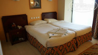 Все работало исправно, кондер шумноват, но привыкаешь минут за 30 нахождения в номере, отключалось электричество раза 2-3 в сутки по времени от пары секунд до 5 минут. Один раз пропала холодная вода на пол часа примерно - жене не повезло =)... Полотенца меняли каждый день, две бутылки воды в бар ставили каждый день, постельное реже, но точно не скажешь как часто(не понятно оно же не пачкается почти) если оставлять 1$ свернут гуся из полотенец.