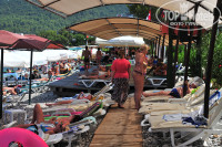 Хреновый, в августе очень напоминал Судак. Места занимали в 7 утра, либо загорали на пирсе за 6$ с 1 пуза.