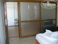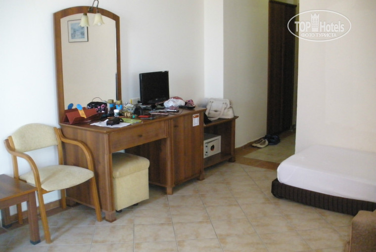 Заселили нас в течение 10 минут, в паспорт вложили 15 баксов. Сумки донесли, еще +5 баксов на чай. Номер супер (к. 1519)! Две комнаты, две кровати (одна двухспальная + одна односпальная), два окна с видом на море + панорамный балкон с видом и на море и на поселок и на горы (угловой). В номере чисто, всё работает: кондиционер, холодильник, телевизор (каналов немного, штук 30, из них пара русских), сейф (платный) фен, мыло, шампунь, тапочки. Может для пятерки и мало аксессуаров, но площадь номера была огромной и вид просто супер! Так как заселились уже поздно вечером, на ужин мы не попали, но хотя бы расслабились в баре до 24:00, выпив немного спиртного, далее пошли разбирать вещи и спать.
