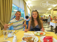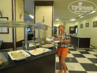 Еда вполне приемлема, всё так и не успели попробовать, в основном налегали на фрукты и овощи! Почти всегда была курица, 1 раз шашлычок - очень вкусный, 1 раз мясо жареное и 1 раз рыба, тоже вкусно!также фаршированные овощи, какие-то каши, супы тоже хвалили-я не пробовала, макароны, рис, салаты, колбасу, сыр не ели, просто резаные овощи и зелень! десерты особенно торты объедение, многие очень сладкие,но выбрать можно! Фрукты были всякие почти всегда арбуз, также дыня, сливы, яблоки, персики, виноград! На завтрак чередовались оладушки - очень вкусные, омлет и яичница!всегда наедались до отвала!