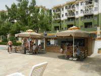 Ресторан один с помещением внутри и террасой. Бар в лобби, им пользуются когда уже закрывается бар у бассейна в 17.00, но туда нельзя заходить в купальниках или плавках, надо что-то накидывать, что крайне неудобно. И бар у бассейна. У детского бассейна что-то типа беседки где пекут гезлеме два раза в день 10.30 – 12.30 и 14.30 – 16.00. Гезлеме частенько были островатые.