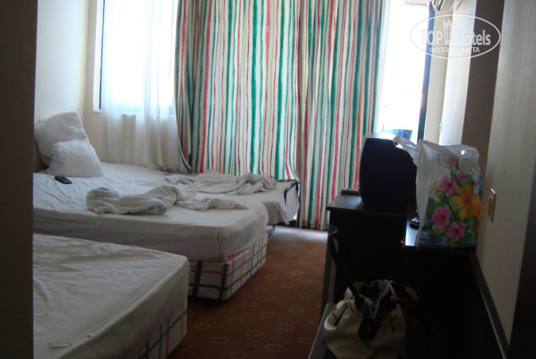 Лежаки находятся под длинными тентами, приходится занимать заранее, этому способствует менталитет наших соотечественников. С собой обязательно брать свое полотенце. Покрытие матрацев никуда не годится – грязные, порванные, торчит желтый поролон. Приходится из кучи сваленных матрацев поприличней выбирать. Смотришь на желтые, цельные лежаки отеля Caretta и вселенская печаль охватывает сердце.