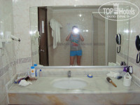 В ванной мраморная раковина с желтыми пятнами. В душевой плесень. Принимать водные процедуры нам не мешало ;) Фен – зверь, работал 5 минут.