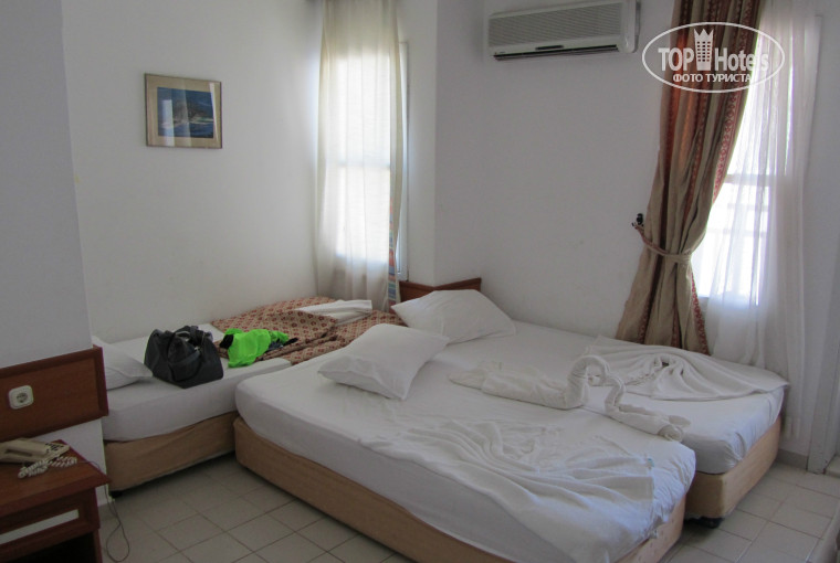 мы приехали с супругой в эту ******* на медовый месяц(за звездочками ненормативное слово, потому что русское не подберешь) сперва конечно почитали отзывы, которые кстати были очень противоречивые, кому то все оч нравилось ,кому то наоборот- видимо и мы из таких, потому что нам не повезло с первых минут заселения-поселили в вонючий номер с плесенью на стенах(но по словам сотрудника ресепшна-нормальный и с большой кроватью+ до моря недалеко) поменяли номер, дали подобный , где в санузле чуть не по колено воды, думал сотруднику в голову чем нибудь тяжелым кину,дали третий-трехместный, ругаться после 5-ти часов пребывания там надоело взяли этот- стены как в больнице белые с грязью, размеры номера меньше чем кухня в панельном доме, санузел тоже- хрен развернешься, еще и дыра в полу от канализации, на балконе торчат провода от кондиционера, ладно хоть он работал,кровати просто жесть- два матраса к друг другу приклеенных, шкаф как будто в номере и не нужен, мол у вас же чемодан есть, снял все на фото и видео , пойду обращаться с претензиями в тур агенство, потому что звездами тут не пахнет вообще, а заявлено 4. Люди не рискуйте , приедете туда пожалеете!!! там сейчас турков больше чем русских, видимо им пофиг где отдыхать!!!