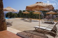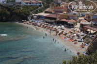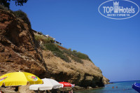 - наш корпус был самым близким к пляжу, поход на который занимал 5 минут. Пляж с очень мелкой галькой, не принадлежит отелю, поэтому зонтики и шезлонги по 2 евро каждый на весь день, но можно обойтись и без них, принеся свою подложку и зонтик или недорого купить их тут же в примыкающих к пляжу магазинчиках с тавернами, при заходе в море метра через 2-3 скользкие крупные камни, но специальными тапочками мы не пользовались, т.к. если сразу плыть, то это не важно, морских ежей тоже не наблюдалось. Единственно, предостерегаю, что во время даже небольших штормов все-таки лучше не купаться, т.к. меня немного протянуло волной по камню при попытке выйти из моря и слегка поцарапало колено. Сначала это совсем не больно, но при повторном купании в соленой воде царапины доставляют неприятные ощущения. Зато при нырянии с маской наличие подводных камней открыло красоту подводного мира. Конечно, с Красным морем не сравнить, но тоже очень увлекательно и красиво.