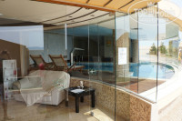 - нам дали номер 010. Как и заказывали изначально, это был улучшенный стандарт с выходом к бассейну с морской водой на несколько номеров, что нас очень порадовало, т.к. спокойная обстановка после шумного верхнего бассейна была контрастом. Кроме того, также порадовало и то, что купаться в этом бассейне можно, когда захочется, в то время, как в общих бассейнах можно купаться только до 19.00. Поэтому мы купались и рано утром, встречая рассвет, и поздно вечером под звездами в красиво подсвеченном бассейне. С бассейна открывается красивый вид на море и пляж;