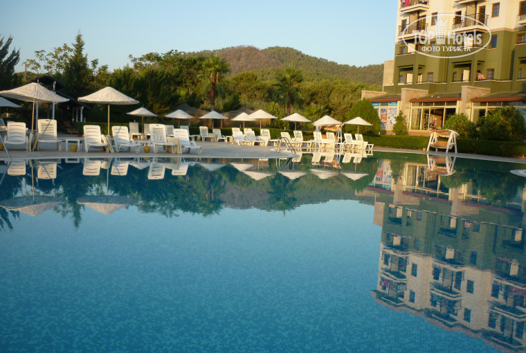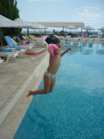 Отдыхали с дочерью 7 лет! Прибыли в 10. 30, пришлось немного подождать, без всяких доплат в 11.30 были уже в номере. Номер небольшой, но очень уютный. Уборка проводилась каждый день, меняли полотенца, все очень хорошо. Персонал приветливый и учтивый. Питание отличное (все не успели попробовать). Территория чистая, убирают в течении дня постоянно. Музыка из соседнего отеля нам не мешала, спали как убитые уставшие за день. Отдельное спасибо аниматорам Дарине, Ане, Рико, Джони,Тоги, и их шефу Бобо. Отличная анимация, целый день ребята пытались расшевелить лежащих туристов. А во время вечерних шоу, просто животы надрывали от смеха! Дочка уезжала со слезами. В общем все супер, обязательно вернемся!