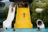 По развлечению – все верно пишут, что этот отель для семей с детками. Им хорошо и в детских развлекушках миниклуба, и в море, и в бассейнах, . Тот что с горками может на несколько дней приковать внимание детенышей, причем иногда самое веселье начиналось в 17-00 когда их как бы закрывали, они забираются на эти горки, тащат с собой воду, их как бы гоняют, но все понарошку – как детям и нужно и такой азарт.. ух! При этом ни одного происшествия не было – это я к тому, что не ограничивают сильно, но за порядком и безопасностью следят. Вот, например, прыгать в бассейн не запрещают (в прошлом году в Италии приходилось ограничивать своего парня) а как же это можно запрещать в этом если не весь смысл купания в детстве для мальчика то уж половина смысла точно! НО в тоже время прыгать например спиной без оглядки не позволяют, чтобы не зашибить кого-то – в общем все верно сделано.