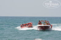 Море - очень теплое, с утра прозрачное, а к обеду и после с волнами и мутное от песчаного дна. Да при чем как по расписанию, можно на часы не смотреть – началась волна идем обедать ;-) Водоросли, конечно, иногда проплывают, а как иначе – это же море и мы у него в гостях, а водоросли там живут если че ;-). В прозрачной воде можно увидеть рыбок, ну конечно, разнообразием эта часть средиземноморья не отличается. На пляже есть развлекательный участок с плюшками, бананами и водными скутерами – тут все стандартно, но не без особенностей. Стоит только подойти познакомится с ребятами, ну да купить какой-то аттракцион, и потом они включают твоего ребенка в свою мафию и таскают уже на все последующие покатушки, или как балласт когда наберутся платные дяди и тети или на катер и уже не поймешь какую выгоду они имеют, просто платишь из соображения того, что услугу все же получил, а на сколько дык сам оцениваешь. Ну просто по дружески как бы - очень теплые впечатления остаются от такого ненавязчивого сервиса.