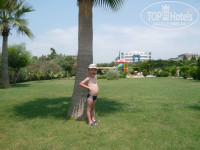 Территорию отеля мне сравнить не с чем, т.к. в Турции первый раз. Нам, в принципе хватало и этой. Но если сидеть в интернете, сравнивать территории с другими отелями, то она конечно небольшая. Хотя если приплюсовать территорию от дороги до пляжа, то она не такая уж и маленькая получается. Пока идёшь до моря, или, наоборот, с моря в отель, нет-нет да зайдёшь пофотаться на газон или в местный зверинец посмотреть на зверюшек. Один раз увидели черепаху. Жена даже её в руки брала. За этой территорией ухаживают, постоянно работали поливалки. Кустики все аккуратно стриженные.....