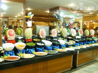 Про питание. Ну, слушайте, я лично к еде неприхотлив и для меня тот выбор, что предлагали, был огромен…. На завтраки мне нравилось брать просто омлет рулетиком с сыром и оладьи с мёдом или с вишнёвым джемом, плюс вкусные, свежие булочки с маслом... Дети часто брали хлопья с молоком. На предлагаемые сосиски с колбасой я бы не советовал бы часто налегать... Вот в обед приходилось выбирать. Часто хотелось похлебать «нашего» супчика, но их супы, конечно на любителя. Хотя пару раз даже попадалась солянка. Ел с удовольствием…. А какой там хлеб!!! Одним хлебом можно было питаться……Салатов большой выбор, но я брал в основном, как это не банально звучит нарезку помидор, огурцов и обычную зелень. Под курочку часто брал острую, красную смеську (просто не нашёл что-то наподобие нашей аджики). Вот на ужин ели от пуза, потому что на улице, на гриле всегда готовили какую-нибудь вкуснятину. Запах разлетался по всей территории отеля. Конечно, хотелось бы побольше выбора фруктов и в совсем другое время. Т.е. чтобы они были не сразу после еды…. Я допустим, фрукты люблю в перерывах между едой. С собой, в комнату пытались брать, но с предупредительной надписью перед входом в ресторан, выносить всё таки было неудобно. Небольшой минус отмечу: вечером иногда брал водочку (под мяско-то), иногда их водку «Раки», но вот тёплую я не могу употреблять. А со льдом, который они предлагали, вообще, что попало получалось. Почему бы её не охлаждать в холодильниках? Мы ж любим запотевшую.....