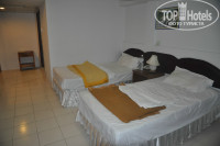Расположение. Отель расположен в городке Патонг, в 1,2 км. от моря по прямой. Надо сказать, что это единственный недостаток, который лично я обнаружила у отеля. Зато недостаток, который для меня лично перекрыл все достоинства. Перед поездкой, читая отзывы, в которых с ужасом описывалась дорога до пляжа я с наивностью думала, что для нас, молодых, активных и очень любящих ходить на отдыхе пешком, это ни разу не будет проблемой, но нееет… Оказалось, что расстояние до пляжа кажется безумно долгим из-за ужасного движения на улицах Патонга и полного отсутствия тротуара, так что идти напряжно, приходиться вертеть головой по сторонам, избегая встречи с мотобайком. Это стало настоящей проблемой, т.к. хотелось прямо с утра быстренько окунуться в тёплые воды моря, а приходилось тащиться через эти «полосы препятствий». Хотя, напомню, что пешком очень любим ходить – мы, к примеру, прошли пешком от гостиницы до пляжа Карон (кто был там – поймёт :). Есть, конечно же минибас до пляжа, который отходит по расписанию каждые два часа, но, во первых не всегда хочется быть привязанным к этому расписанию, во вторых минибас идёт в сторону торгового центра Джангцейлон (бывшее название острова Пхукет), немного не доезжая до пляжа, далее идти минуты три. Но это в южной части пляжа, а там намного грязнее, чем в северной, куда мы ходили пешочком. Расположение вдали от пляжа – большущий минус. Если не хотите ходить, то можно взять мотобайк на прокат(от 120 бат в день), но это очень опасно, даже если есть опыт вождения, при нас было русских трое погибших на Патонге, разбившихся на мотобайке. Или платить за местное открытое такси «Тук-тук», скооперировавшись с кем-нибудь из отеля, в кузов можно поместить до 8 человек, правда, нам позволяли максимум шесть, это уж как договоришся.