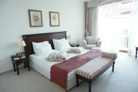 Отдыхали с 10 по 20 августа. Отель понравился, номер просторный, уборка каждый день. Вид из окна у нас был на парк. Мы приехали в 5 вечера поэтому нас разместили сразу. При размещении спрашивайте на ресепшене сразу карточку для пляжного полотенца. Ее возле бассейна отдаешь и выдают полотенце. У нас практически все время что мы там были на море были волны, и с утра прохладно, поэтому мы ходили в крытый бассейн (этаж G) с тепленькой водичкой. Есть тренажерный зал. Вечером тоже было прохладненько, поэтому лучше захватить кофточку легкую. На завтраках кормят разнообразно, много выпечки, блинчики. Кушать лучше ходить в ресторанчики на 2 линии, на первой нам не очень понравилось. на 2рой порции больше, и дешевле, и вкусней. Понравились старый дуб и следующее кафе за ним(не помню название). Цены дешевые поэтому мы не пожалели что в отели взяли только завтраки. Ездили в Варну, автобус стоит 3 лева, но можно взять такси , таксисты охотно торгуются) Рекомендую кабрио пикник(гольф пикник). Тем кто любит цветы и растения, рекомендую эко парк, который находиться недалеко от источников минеральных. В болгарии не стоит заказывать шашлык, готовить они его не умеют( зато морепродукты, рыба и местные блюда очень вкусные. С удовольствием приеду в Болгарию еще раз. 1 лев на ниши деньги это примерно 20-21 р. Лучше менять и платить левами, в евро в кафе курс выше будет. Можно менять в райфайзене, возле адмирала, с паспортом, либо чуть не доходя(там без паспорта) . курс 100 евро-191 лев