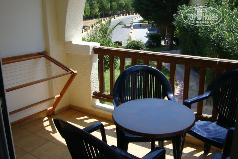 Сам номер, достаточно просторный, на приличного размера балкончике столик и 4 пластиковых стула.