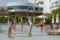 Мало русских,мы встретили 2 или 3 пары+ 4 русские дамочки в поисках приключений)) Вели они себя,мягко говоря,дико!Везде есть неадекватные туристы! Но на Новый Год было тихо,наверное,интеллигентов много)) Так же много немцев,румынов,датчан,в предпоследний день нашего отдыха,была делегация французов и корейцев) Много детей,причем лет 5 в основном. Анимация бодрая была утром, вечером до 22 диско, включали Руки ВВерх, вот мы плясали)) Работал бар с напитками,ничего,сносный) Сгоняли на экскурсию на яхте,отдали по 60$ за чел.,но очень понравилось!)