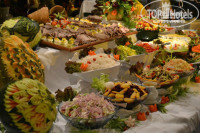 Наступило утро и мы пошли на завтрак!Скажу честно-всё было ОЧЕНЬ вкусно,сытно и разнообразно! Омлет,колбаса,сыры(видов 5),овощи,фрукты,горячии блинчики,джемы!Супер!Единственное,кофе и чай-ужас,т.к. там вода сама по себе не вкусная,даже покупная!Зато фанта,кола,сладкие,не такие как у нас!) Обед-также,очень хороший!Сколько там видов выпечки,глаза разбегались!И сладости!ммм)) Только,почему-то,суп давали в ужин,наверно,у египтян так положено!) На Новый Год(31 декабря) был вообще праздник живота!)) Так что по питанию хорошая 5!))