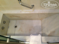 В ванной сама ванна очень маленькая, составленная из кусков мрамора, честно говоря, выглядит не очень, ну, а если сесть на унитаз, то обязательно упрешься головой в раковину, при желании можно положить подбородок на столешницу )))) при достаточно свободном номере такая экономия площади крайне не понятна.