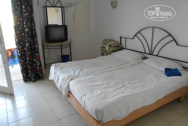 Телевизор аж с 2-мя русскими каналами, новости посмотреть можно, пульт можно взять на рецепшене, но мы обходились прекрасно без него. В номерах нет фена, геля для душа и шампуня, так что берите все с собой. Балкон выходил на площадку у ресторана и по вечерам с 21-22 было достаточно шумно.