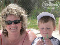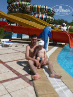 Отдыхали в этом отеле с 9 по 19 мая. Ездили большой компанией:8 взрослых и 3 детей. В аэропорту нас встречала гид Аня, она нас курировала весь наш отдых. Отель для 3* очень даже хороший, территория большая, аквапарк с 4 горками и 1 круглая "унитаз", для детей маленькие горки. Но номер маленький, коврового покрытия нет, так же нет фена (берите с собой), как работает кондиционер я так и не поняла ( хотя у наших друзей он работал). В номере убирались каждый день, полотенца меняли примерно каждые 3 дня, постельное белье нам поменяли когда я попросила горничную (ребенку ночью было плохо).