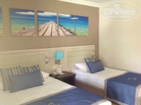 Общее впечатление об отеле прекрасное! Чувствуешь себя как дома) Это это целый город удовольствий и развлечений для детей и взрослых! Номера находятся в небольших 3 этажных домиках, окруженных уютными зелеными двориками, где так же детки могут побегать. Все корпуса удалены от сцены, где проходят вечерами различные развлекательные программы для детей и взрослых, но если хочется отдохнуть, то удалившись в номер ничего не слышно и царит тишина и покой.