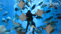 И конечно же экскурсия в Дубай. Поскольку я была одна с маленькой дочкой, мне было тяжело ехать с группой от туроператора (они приезжают обратно в 1-3 часа ночи). Брать такси тоже было опасно, потому что не все таксисты говорят на русском, а я плохо говорю на английском. Эти варианты были дешёвые по сравнению, 170 и 150 долларов. Но мне пришлось взять машину от отеля с водителем пакистанцем, который немножко говорил на русском, а поскольку я немножко говорю на английском, у нас все получилось. Такая экскурсия на машине мне обошлась в 215 долларов. Но я не пожалела. Водитель мне показал все и даже был персональным фотографом. И были мы в 21-00 вечера в отеле и даже успели поужинать. Увидели и отель "Парусник", и пальмовый остров, и Атлантис где лыжный курорт под стеклом, и Дубай Мол, и поющий фонтан, и самый большой небоскреб, и аквариум с акулами и скатами, и очень много всего интересного.