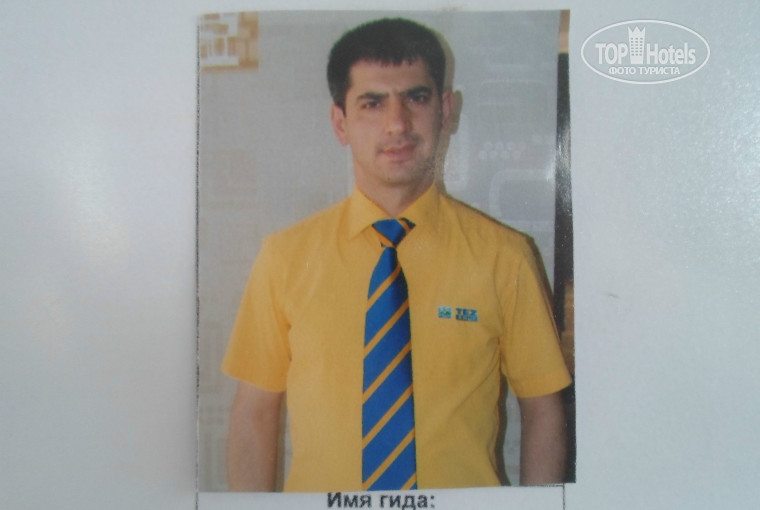 фото этого отельного гида от тез тура я выложу. У меня с ним вобще не сложилось, На инфо встрече он раздал всем анкеты, где нужно указать номер паспорта, номер комнаты, вобщем все те данные которые заполняються при заезде в отель и еще указать дату выезда номер рейса и дальше идут поля для экскурсий. Так при всем при этом ему нужен ваучер в котором вся инфа и так указана. Так вот ваучер я ему отдал а анкету заполнять не стал, на что он начал угражать, что за мной не приедет трансфер и мне придеться добираться пешком до аэропорта. Короче я забил на него, такой нагласти я не видел ни от одного отельного гида. Трансфер за мной все равно приехал и все во время!