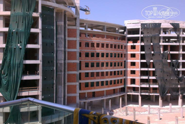 Номер: Номера хорошие, хотя и вряд ли 30 метров, как было заявлено на сайте. Нас абсолютно устроил даже вид на стройку, поскольку на нашей стороне солнце было только после 5 вечера, это позволяло в течении практически всего дня не пользоваться кондиционером, а просто открывать балконную дверь. Кстати, расположение кондиционера очень удачное, в голову и ноги не дует. Хороший балкон, вид, как я уже писала, был на стройку, бассейн и амфитеатр. Вечерние шоу мы смотрели прямо с балкона. Единственное, что раздражало все время - это абсолютно глупо прибитая полка для полотенец в ванной, четко возле выхода из душа. Это не позволяло открывать дверь полностью, протискивались в щель, иначе от удара стоял такой грохот, что казалось душевая дверь в дребезги разлетится.
