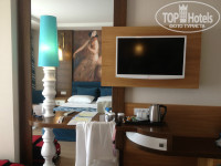 Ездили в этот отель в период с 29 августа-6 сентября с anex-туром. Прилетели рано утром(примерно около 8ми утра), ждали заселения до 12, так как свободных номеров не было. Персонал был очень приветлив, забрали у нас сумку в спец.помещение, мы взяли необходимую одежду чтоб переодеться и пошли гулять по отелю, позавтракали, прошлись по базару напротив.. В общем время быстро пролетело. Нас заселили в трехместный номер с видом на небольшой пустырь, за которым какие-то здания, которые вечером очень красиво подсвечиваются, а за всем этим было видно гооры!) Многие жалуются на вид, но там по всей округе особо смотреть нечего, поэтому мы были очень довольны хотя бы этим) Номер очень чистый был, красивый, уборка производилась каждый день, даже когда мы не вывешивали табличку с просьбой убраться) Если не хотите, чтоб к вам каждый день ходили, можете повесить табличку с просьбой не беспокоить) В номере телевизор висит, есть три русскоязычных канала, лично мы взяли с собой кабель, подключали телевизор к планшету и смотрели любимый сериал иногда по вечерам, когда не хотелось гулять:) В номере есть минибар, в нем литр колы, фанта, два сока и вода. Насколько я поняла пополняется каждый день только вода. Балкончик очень уютный, мы иногда там сидели за столиком, курили кальян, который там же и купили:) В общем касательно номера все было отлиично!