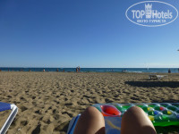 Про пляж еще не рассказала. До него идти действительно недалеко, минут 7 спокойным шагом.. Автобус без окон (открытый) туда ходит каждые 10мин. Шезлонгов там очень много, поесть там можно в обед очень вкусно. В пляжный волейбол играют там с 4ех. Водная гимнастика проводится, еще какие то игры с шарами(их бросать нужно). Дно в море классное, песчаное..) Волны большие:) Мы прыгали на них:) Говорят, что если до буйков на матрасе доплыть, то на дне можно морских звезд найти) мы в посл день узнали об этом, не стали матрас заново надувать:)