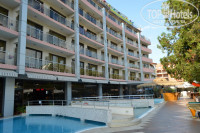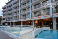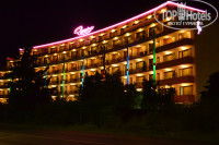 Отель находится на 3 линии примерно. До пляжа мы ходили минут 10. Перейти через дорогу, там по тропинке, и все, ты на набережной. Набережная в Солнечном береге шумная, поэтому мы ни раз убедились в том, что расположение нашего отеля было отличное:) Вечером он красиво светился и выделялся из всех рядомстоящих.