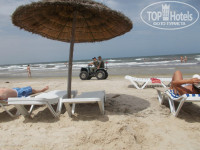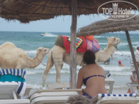Пляж. Вот это место, которое нас интересовало больше всего другого. Ну что можно сказать про пляж. Он есть. И есть белый песочек. И есть соленое море. Все, что нам требовалось. Но пляж маленький. Нет, нет. На нем все размещаются без проблем. Всегда хватает лежаков, матрасов. Но лежаки вплотную друг к другу с узкими проходами между рядами. Пляж загажен отдыхающими. В песке чего только нет. И хотя по пляжу запрещено ходить в обуви, босиком относительно небезопасно. Причем я видел, как следят за пляжем в Монастире. Там несколько раз в день граблями песок прочесывают. На нашем пляже может вечером или с утра убираются. Не знаю, не видел. Вообщем нас пляж устроил полностью, но понимаю недовольство тех, кто видел лучшие пляжи. Море - это чудо. Оно было разным. И грязноватым и чистейшим, и попрохладнее и теплое, и спокойное и штормящее. Но всегда желанное. Никаких претензий к морю я нас нет. Море прекрасно подходит для семейного отдыха и для людей, не очень хорошо плавающих. До буйков пологий вход. У буйков глубина где-то 1,5 метра. Сильные пловцы заплывали за буйки, но это зависело от районов жительства пребывающих, как и многое другое. То за буйками никого не видно вообще, то приехали откуда-то и многие за буйками. Вообще, каждая группа отдыхающих привозила какие-то свои местячковские особенности. На пляже куча разнообразных водных аттракционов. Цены достаточно демократичные. Также катают на лошадях вдоль всего побережья и на верблюдах. По кромке моря ходят торговцы всякой всячиной. Попытаюсь разъяснить про грязь, верблюдов и торговцах. Лично при нас не было такой грязи в море, которая помешала-бы в нем искупаться. Ну были после шторма водоросли. Но они небольшими клочками, которые легко обходятся и только у берега. Их оперативно убирали служащие пляжа. Я-бы сам лично не полез в воду, если-бы она вся была покрыта травой. А вот то, что плавают разорванные стаканчики и другой мусор, дак это посмотрите в зеркало и поблагодарите кого там увидите. Но и этот бытовой мусор особых проблем не создавал. Вроде два раз видел я такое в море. Насчет верблюдов и лошадей. Они-же для вашего развлечения там ходят. Не видел никаких проблем из-за них. Один раз в конце отпуска все-же увидел, как лошадка нагадила. Тут-же работники пляжа прибежали и убрали за ней. Все дружно посмеялись. Так что в море никакого дерьма не плавает. Это морские ежи, а не то, что вы подумали. Зато вокруг нет никаких яхт, которые загрязняют воду. Торговцы тоже ходят для вас. Ничего плохого я в этом не вижу. Пару раз что-то покупали у них сами и много раз видели, что и другие люди у них покупают. Пляж закрывается в 18-00. Так что никаких встреч заката на пляже. На пляж легко попасть, обойдя отель, но при этом отель за вас не отвечает. Так что не знаю, ходил-ли кто-нибудь на пляж вечером. Теперь опять про субъективность мнений. Вот в непроверенных есть отзыв человека, с которым мы отдыхали в одно время. Он пишет, что много медуз. Интересно, мы не видели ни одной медузы. Почему так отличаются наши отзывы? Не могу понять. Итак, медуз мы не видели. При нас поймали только осьминога детям на развлечение и пару крабиков, опять-же детям. Вообщем за море и пляж я поставил-бы твердую пятерку, не смотря на размеры пляжа. Совет. Купите с собой что-то типа Псило-Бальзам. По тюбику на человека. Мы купили его против укуса медуз, комров и других 