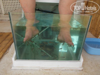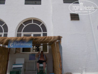 ПИТАНИЕ. Про питание постараюсь покороче, так как это чисто субъктивная оценка. Все остальные отдыхающие могут не согласиться с моим мнением и тоже будут правы. Первое. Начитался про очереди в ресторан и был очень расстроен. Стоять в совдеповской очереди за тарелкой картошки никак не хотелось. А оказалось, что и не надо. Нет никаких очередей. Сама система раздачи устроена так, что исключает какие-либо очереди. Лотки с пищей расставлены по всему ресторану, поэтому никакого скопления людей там в-принципе быть не может. Где более-менее вы сталкиваетесь с людьми - это на раздаче горячих блюд. Но и там все продумано. Раздача с двух сторон. И все подходят к тому блюду, которое им нужно. Ни разу не слышал чьих-то возмущений по этому поводу. Мы выбирали еду не спеша, больше одной тарелки в руках не несли, поэтому нам пришлось выработать свою схему заполнения стола, чтобы горячее не остывало. Сначала мы выбирали напитки. Есть кулеры с горячей и холодной водой, кофе-автоматы, соки-автомат. С обеда начинает работать бар. В котором вино трех сортов, пиво, кола, спрайт, фанта. С напитками мы искали стол и располагались. Вот тут проблема есть. Столы перед приемом пищи сервируют официанты. И вот если сервированного стола не хватает, приходится садиться за стол, за которым уже поели. За грязный конечно никто никогда не садился, все равно почище выбирают все. Но со столами проблемка есть. Хотя в большинстве случаев нам попадался сервированный стол. Проблем со стаканами и вообще с чем-нибудь - нет. Ну кончились стаканы, ну сходите пока за салатом, вскоре их поставят. Не понимаю, зачем стоять-то и ждать их. При нас я видел, чтобы кто-то стоял в очереди за стаканами. Взяли напитки, расположились - идем за горячим. Выбор блюд огромен. Думаю, что я и трети не попробывал, что давали в ресторане. Кстати, не называйте ресторан столовкой. Этим вы только себя подставляете незнанием принципов питания по системе шведского стола. Это - ресторан, нормальный ресторан со шведским столом. Скажу сразу - у меня с питанием возникли определенные проблемы. Ну не воспринял я их блюд с харрисой. Это такая местная приправа на основе горького красного перца. Все, куда добавлена эта приправа, становится вкусом этой приправы. Поэтому я употреблял в основном, европейскую или как это правильно назвать, пищу. Мне их выбора вполне хватало, никогда голодным не был. Из мясных блюд понравилась телятина, говядина тоже очень вкусная, но телятина лучше. Верхом мясного блюда для себя я поставил ягненка. Ни разу не пробовал ранее этого мяса, а раз попробовал и очень понравилось. Но телятина и ягненок вроде раз в неделю дают, не часто. Понравились шашлычки. Ну а так и курица и еще много чего. На завтрак только сосиски из мяса и колбаса, которая лично мне понравилась. На гарнир картошка разного приготовления. Еще много всяких гарниров. Для макаронников - рай. Отдельный уголок, где подают спагетти. К ним дают какие-то добавки. Мне очень понравилась с типа фаршем в соусе. Вообщем кто в этом понимает, должны обрадоваться. Целый стол с оливками и оливковым маслом. Трудно сказать, сколько там сортов оливок и масла. Бутылок двадцать точно стоит. Понравился сыр, несколько сортов. Десерты. Надо сказать, что мы ели помаленьку и определенные блюда, поэтому лучше всем самим все увидеть и попробовать. Для детей есть специальные