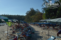 Пляж: Супер!!!!! Правда иногда попадается мусор (початки от кукурузы, пробки, бычки -но совсем мало, все таки не все свиньи). Песок мелкий, хороший. Лежаки платные. Но мы располагались на песке. Стелили полотенце. Но на берегу почти не сидели. Купались до 12ч и после 16:00. Вода очень теплая, вылезать совсем не хотелось. Иногда попадаются медузы. В некоторые дни бывало, что в воде кусался планктон. Мы с начала вообще не поняли что такое, постоянно что-то щиплется, да еще в самые интимные места. Ну в эти дни мы купались в бассейне (всего 2-3 дня было). Иногда часто иногда не очень. Плавают маленькие рыбки и маленькие рачки попадаются. Волны бывают сильные. Но это даже интересно. Ребенок у нас на круге каталась на волнах, ловила волну и подпрыгивала. Хотя в первый день, пока мы раскладывались, она пошла одна в воду рядом с берегом и тут ее накрыла волной. В итоге вылавливали, нахлебалась конечно и испугалось. Но это было не надолго.