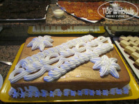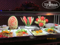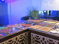 - Нас с мужем питание устраивало полностью... Ребёнок 10 лет немного вредничала... Мяса и рыбы было вдоволь... Разнообразные тушеные овощи... На обед и ужин ежедневно присутствовал рис, макаронные изделия и что-нибудь из картофеля - пюре, как домашнее (обычно на ужин, очень ему радовались), фри или картофельные шарики, жаренные в масле... Два раза было ассорти из морепродуктов. Салаты брали без майонеза, нам он оказался не по вкусу... Тем более, что зелени хватало. Из фруктов ежедневно дыня или арбуз, яблоки, груши, сливы. В начале нашего приезда были персики (кстати, мелкие и "деревянные"). Чередовались виноград, слива и апельсины, последние сладкие, совсем не похожие на те, что продают у нас в России... Просто рай для сладкоежек! Разнообразие выпечки, тортиков, пирожных... Они, конечно, отличны от наших..пропитаны сиропом...из разнообразия по вкусу найти можно! Кстати, в 16 часов у бара, к чаю можно взять кексы, песочное печенье... Нам эта выпечка нравилась больше! Мальчишки, которые убирали со столов - молодцы, делали всё быстро, мест всегда хватало. Из бесплатного спиртного попробовали всё: пиво, вина белое и красно, джин-тоник, раки, платно брали коктейли на дискотеке... Пить можно, но нечасто и немного, впрочем как и должен употребляться алкоголь... Кстати, иногда в баре наливали в стаканы совершенно немытые... Будем думать, по ошибке персонала...