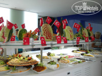 Замечательный отель, рекомендую. Отдыхали с супругой в сентябре, с 8 по 14 число. Прибыли в отель после 09:00, в 11 были заселены в номер 2906 - пятый этаж с видом на центральные бассейны и море. Отличный номер, отличный вид. Уборка в номере хорошая, мини-бар наполняется регулярно. Питание в ресторане отличное (лично я поправился), бассейны чистые, персонал приятный и вежливый. Хамства и плохого отношения я не встречал. Кушали в a'la carte - хорошее обслуживание, приятная обстановка, стол был хорошо украшен. В среду попали на турецкую ночь - за ужином живая музыка, турецкие флажки, и как всегда изобилие блюд и сладостей. Аквапарк является приятным бонусом к отдыху - много горок, как для парного спуска, так и для самостоятельного. Очередей и давки не было даже не смотря на большое количество сторонних посетителей аквапарка. В целом на территории отеля приятная, дружелюбная атмосфера. Команда аниматоров - молодцы.