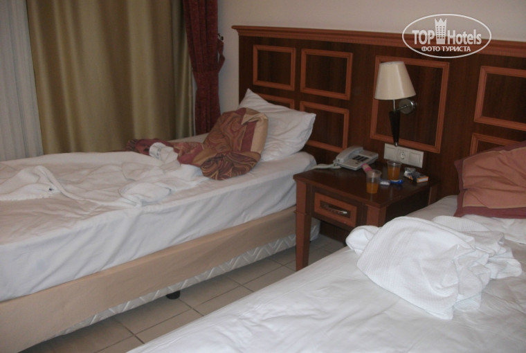 Единственный минус -море далековато, но мы брали машину в аренду и ездили сами! А отель очень чистый, номер был на первом этаже очень новый! Заселили сразу, мебаль хорошая, вид с балкона на зеленый сад! Все предметы в номере в рабочем состоянии фен новый,,кондиционер морозил сильно, всё работало! Отличный сейф в номере. Я путешествовала 3 дня, никто ничего не тронул в номере! Кемер богат русскоязычными жителями, самый близкий от аэропорта+богат количеством зелени. Отель для спокойных людей, но танцуют там турецкие парни каждый вечер, но территория маленькая диско там нет. Единственное, что еды было не много по разнообразию, а в целом очень хорошее место рядом магазины, все подряд знают русский и море в горах в отличие от Аланьи оно чище т.к. камни, но если вам нужно пальмы, жара, и сильный загар то вам в Аланью! Данный отель не для богатых, а для обычных людей как я! Все магазины очень близки от отеля, как продуктовые так и одежда!