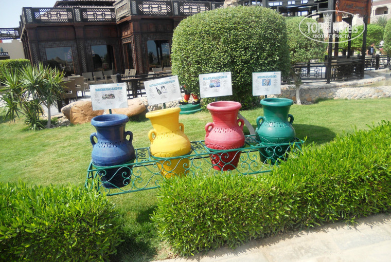 Территория отеля чистенькая, зеленая, ухоженная, много пальм, цветочков. Очень красивый и большой пляж с хорошим песочным заходом. Нам больше понравилась территория соседнего "Мамлюка". Мы могли пользоваться всей его инфраструктурой, поэтому чаще ходили туда отдыхать, т.к идти всего 3 минуты. Также, на территории мамлюка и нашего отеля есть 4 ресторана, в которые можно записываться по одному разу на ужин. мы во всех побывали.)) Больше всего понравился Восточный и Итальянский. Есть два танц-бара (клубом их не назовешь), в Мамлюке и у нас. Музыка так себе, но подрыгаться можно.)))