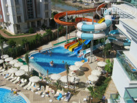 Отдыхали с семьей, я с мужем и сын с женой и ребенком 4 года, с 10 по 18 сентября 2013 года . Разместили сразу по приезду в 10 час. утра за 50 долларов (гид поспособствовал). Номер отличный с видом на бассейн. Питание порадовало, изобилие фруктов (нектарины, арбузы, яблоки, груши, сливы, дыня), много мясных блюд из курицы, индейки, говядины, баранины, холодных закусок, соусов, кофе, какао, чай, холодные напитки, мороженое. Кормили постоянно и на пляже и у бассейна. Вобщем, мы просто объедались. Девочка у нас аллергик, но и ей находилось что покушать. Для детей каждый день была отварная курица, рыба, рис без приправ. Места в ресторане хватало всем в любое время. Официанты в большинстве хорошие, но была и парочка лодырей, которые за весь обед ни разу не подошли. Мы старались потом за их столы не садиться. За ужином давали официанту один доллар и он за нами ухаживал как за почетными гостями.