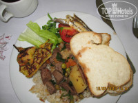 Голодными мы не были, скорее, наоборот. Любителям мясных блюд не сюда. Курица, рыба в разном виде, в том числе на гриле, мясо на вертеле, типа шаурмы(правда, редко), различные сосиски, колбаски, котлетки разлетались в раз. Помидорчики-огурчики-перчики всегда свежие, зелени разной много. Рис длинозерный, макарошки различные, картошечка, баклажаны, кукуруза, горошек. Всего-всего очень много и вполне съедобно приготовлено. Вот фрукты в отеле- это да, как пишут в других отзывах, в основном, безвкусные или недозрело- кислые. Но может быть кому-то и нравились кисленькие яблочки и сливы. Арбузы- тоже несладкие совсем. Поэтому, покупали фруктики на базарчиках. А вот, виноград понравился.