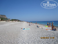 Пляж отеля немаленький, галечный, надо будет пройтись чуток до него; лежаков хватало в любое время. На ресепшн выдают карточку на полотенца. Бесплатно. Менять их надо каждые два дня.