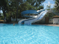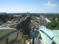 Территория отеля мне очень понравилась, вид с балкона вечером просто класс, целыми днями садовник за каждым листочком ухаживает. Площадь территории небольшая, но уютная (все рядом, а друг другу не мешает). Очень понравились бассейны, один большой, пустой и тихий (можно сказать для иностранцев, пенсионеров или профессиональных плавцов), а вот второй бассейн с горками находится в тени, что хорошо для детей (не сгорят) и горки расположены так, что те кто катаются не мешают тем кто просто плавают. Есть еще два для совсем малышей. Сама видела как по утрам приходят люди в белях халатах и берут из всех бассейнов воду на проверку. Вода в бассейне чистая, хлоркой не пахнет, у меня взрослый сын, который постоянно ныряет в бассейне, так вот у него не было красных глаз, как в наших русских бассейнах. Горки не очень большие и не очень быстрые, на винтовой даже некоторые большие взрослые застревали, но нам с сыном в самый раз было (мы не экстрималы).
