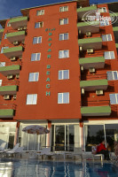 Один минус там шла стройка соседнего отеля пока мы там пребывали,но ночью там уже никто не работал,да и днём особо нам не мешала,мы приезжали туда отдыхать,а не сидеть в номере.Аниматоры клёвые ребята,Виктория и Этем!!!очень с ними подружились,вывозили нас в ночные клубы Алании на газельке по стоимости 5$ за человека(в это входит трансфер от отеля до клуба и обратно,ну и вход соответственно).Отдельный привет официанту-бармену Салиму,очень хороший парень.Еда нам понравилась,всегда было что покушать на любой вкус,мяса конечно не было,но давайте не будем забывать во первых это отель тройка и во-вторых в Турции вообще напряжёнка с мясом....Моему мужу очень понравились супы-пюре,но всё конечно на любителя!Так,что ребята езжайте не пожалеете,для тройки очень даже хороший отель.Молодёжи было много)