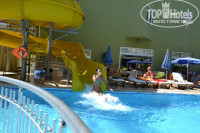 Как уже писали территории почти нет, да и не нужна она особо. Бассейн горка все чистое хорошее, колотой плитки нет, бассейн "пылесосили" каждый вечер, весь мрамор вокруг бассейна моют во время ужина.