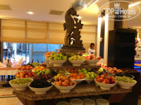 Питание - супер! Здесь многие со мной согласятся, держать себя "в черном теле" невозможно. Нет 10 видов блюд из курицы, зато - баранина, индейка, телятина, перепела, разная рыба, кальмары, крабы, креветки, мидии и даже улитки! Все сезонные фрукты, сладости, большой выбор хлебобулочных изделий (для тех, кто без хлеба - никуда). Детский стол приличный, всегда в наличии йогурты "растишка", фруктовые, овощные пюрешки, овощные супчики, куриный бульон (есть блендеры). Переживала, что не накормлю свою годовалую, но зря, по-моему мы там даже отъелись. Свежевыжатые соки - апельсиновый и морковный целый день, после завтрака они в кафешке, где пекут гёзлеме, там же айран в баночках, в разлив он на пляже. Мороженное, кстати, тоже целый день, а в ресторанах помимо трех стандартных видов вина предлагают шампанское. Для любителей пива есть у бассейна разливное, очень неплохое.