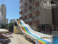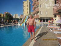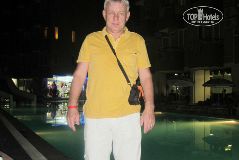 Общее впечатление: более-менее. Питание - глаза не разбегаются от изобилия, но голодным не останешся, повара знают свое дело - всё было вкусное, раздражали только кошки под ногами в столовой. Территория небольшая - бассейн, лужайка с качелями-каруселями для детей ... и все! Разместили быстро - через 5 мин. после приезда в 14-00. Номер - не затертый (сейф, холодильник, кондей с пультом, ТВ с 2-мя российскими каналами, мебели для разбрасывания шмоток хватает). Пляж свой - толко на шатлбасе, ездить не очень удобно, с 9-00 до 10-00 выезд, обратно в 12-00, нам хотелось бы пораньше, посему ходили сами 10-15 мин. на платник за 14 лир с двоих (весь день - лежак, матрас, столик, зонтик, пепельница). Вывод: для пар вполне, если вы не любите сидеть у телека и торчать весь день в инете....